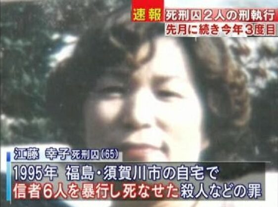 江藤は2008年10月5日に死刑が確定し、2012年9月27日に刑が執行されます。また3人の信者は無期懲役から懲役18年の判決が下りました。