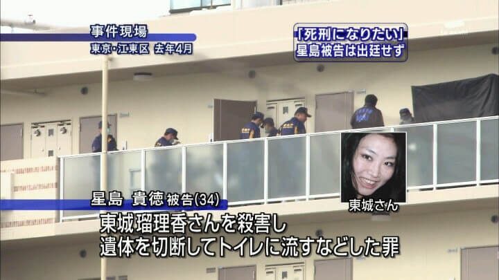 犯人の星島貴徳は同じ被害者女性と同じアパートに住んでいたものの、面識はありませんでした。星島は性奴隷確保を目的に被害者女性の部屋に侵入。騒がれた事から女性を殴打し、そのまま自室に連れ込み殺害したのです。