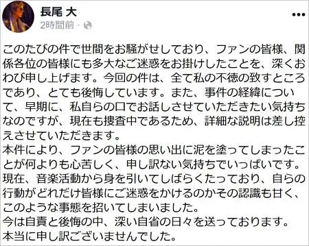 「このたびの件で世間をお騒がせしており、ファンの皆様、関係各位の皆様にも多大なご迷惑をお掛けしたことを深くお詫び申し上げます」