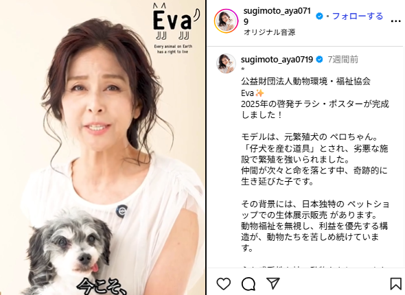 90年代からエロスを武器に女優へのキャリアを積み上げてきた杉本彩さん。2014年にタレント活動の傍らで動物愛護団体を設立。犬猫の保護を積極的に行うように。2025年現在もタレント業と動物愛護家の2足のわらじで活躍を続けています。