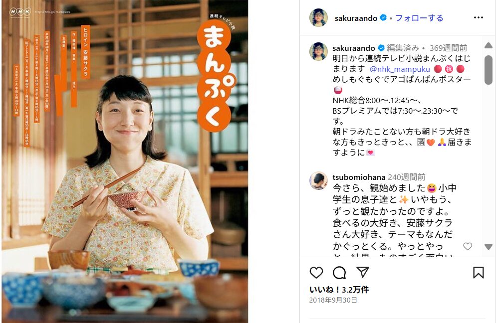 濡れ場もこなす体当たり演技が評価された安藤サクラさんは、連続ドラマのヒロインや憧れだったNHK連続ドラマのオファーが来るようになったのだそう。私生活では2017年に第1子を出産し育児に専念するつもりだったものの、「万引き家族」を演じ子育てと両立させています。