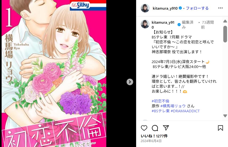 2024年夏にはドラマ「初恋不倫」で、主人公の夫の不倫相手を演じており、胸の谷間を見せてのラブシーンに挑戦。性欲剥き出しのキャラをうまく演じています。
