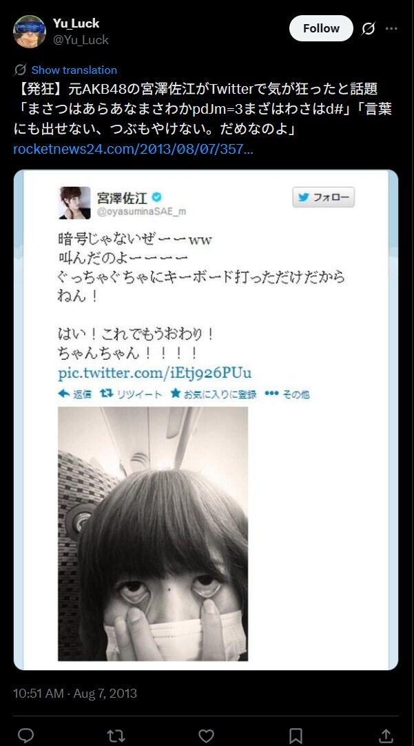 理由はわかっていませんが、週刊文春の発売の前に宮澤さんが意味が通らない発狂ツイートをつぶやいており、それに引いてしまったのではという噂も。ツイートは翌日には削除されたようですが、拡散され他のメンバーからも心配される事態になっています。