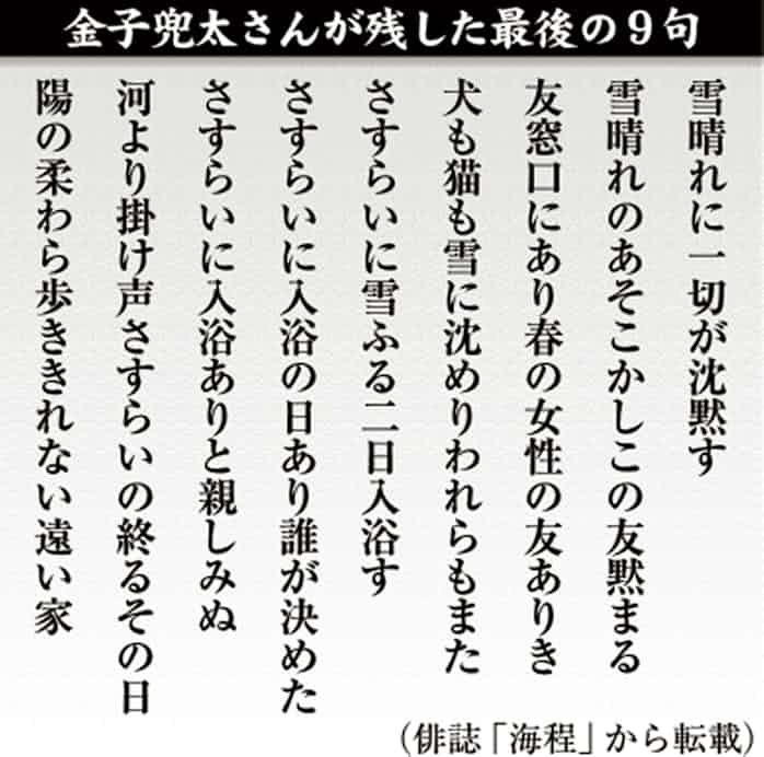 - 俳人の金子兜太さん死去、98歳 「アベ政治を許さない」揮毫も