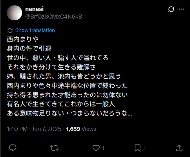 そんな彼女は2025年5月に芸能界活動を引退することをInstagramに表明しました。引退理由は身内トラブルがきっかけで人生を見直したくなったからだとか。現在は地方で静かに暮らしているといわれており、心と体を休ませているのではないでしょうか。