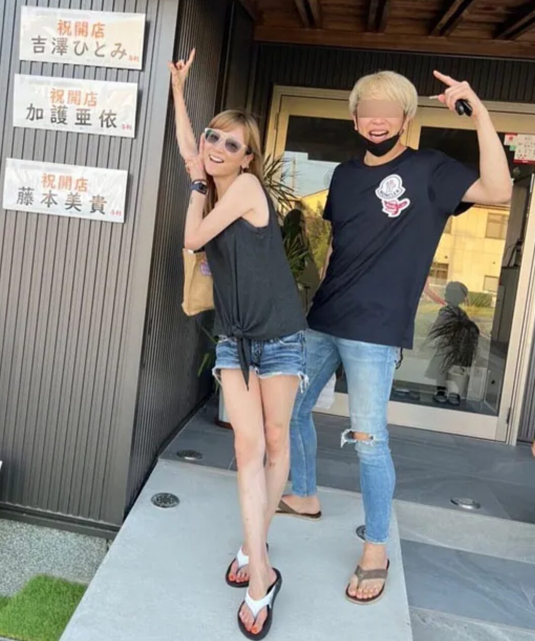 「兵庫県の姫路にあるヘアサロンのインスタグラムです。2022年5月にオープンした際には、吉澤さんだけでなく、加護亜依さんや藤本美貴さんなどからお祝いの花が届いた写真が投稿されていました。オープンから3か月後の2022年8月に店を訪れたようで、金髪のロングヘアにサングラスをかけ、黒いノースリーブにデニムのショートパンツで手足を露出した吉澤さんの写真が投稿されているんです。芸能界を引退しても、当時の美貌やスタイルのよさは保たれています」