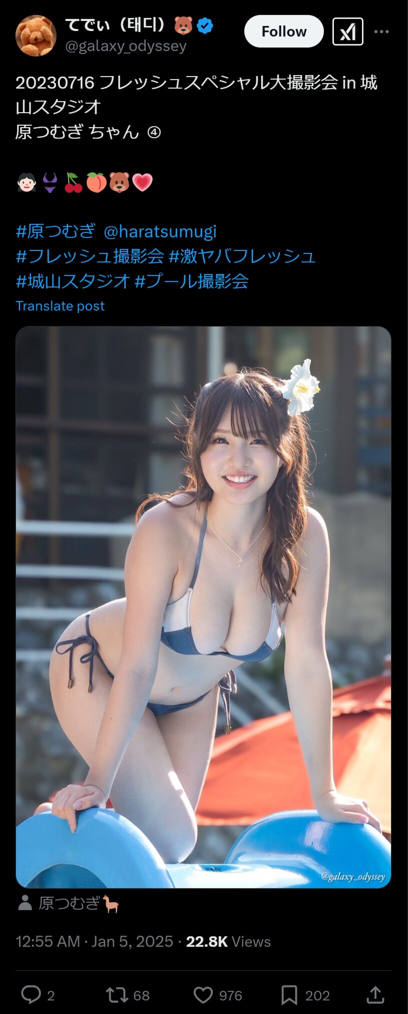 バスト101cmのIカップを誇るグラビアアイドルの原つむぎさんは、2021年発売の週刊プレイボーイ「超次世代グラドルボイン番付2021年秋場所」で「東の横綱」に選出されています。