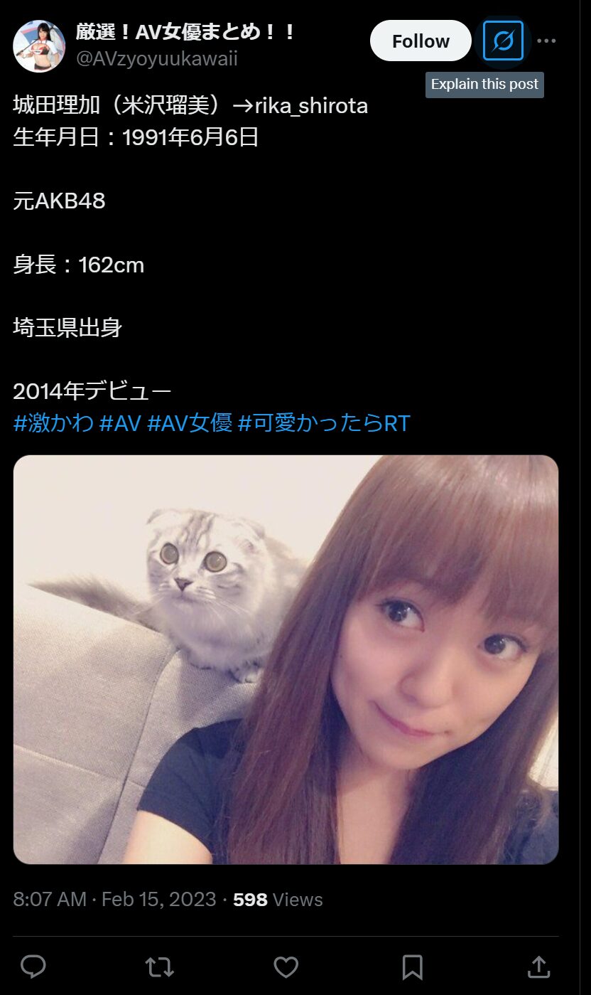 米沢瑠美さんはアイドルグループ「AKB48」の元メンバー。彼女は2012年にグループを卒業後、2014年に城田理加という名義でAVデビューしています。彼女の卒業理由は、「男性との親密写真」が流出してしまったためでした。