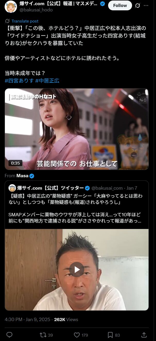 離婚後はデリヘルに流れていたという情報も入っており、その後にAVデビューと典型的な転落コースを歩んだといわれる彼女。近年はフジテレビ問題も精神的に追い込まれ芸能界を引退した原因では?といわれており、芸能界の闇により犠牲になった1人といえるのかもしれません。
