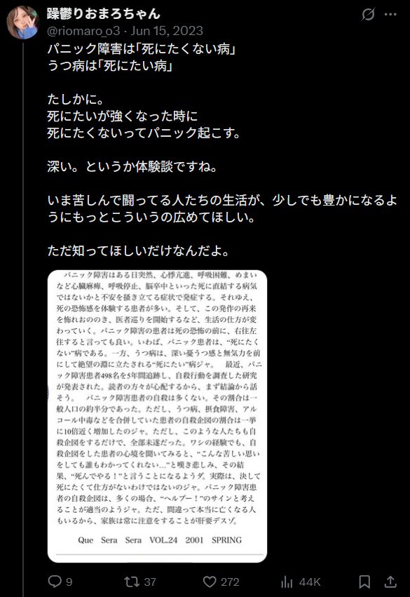 2024年1月時点でアカウント名を「躁鬱りおまろ」に変更。最終的に11本+2本の撮影で引退したと報告しました。元々長くても3年で配信に戻ろうと考えていたそうで、病気をカミングアウトしたうえでメインの配信に戻ると発表しています。