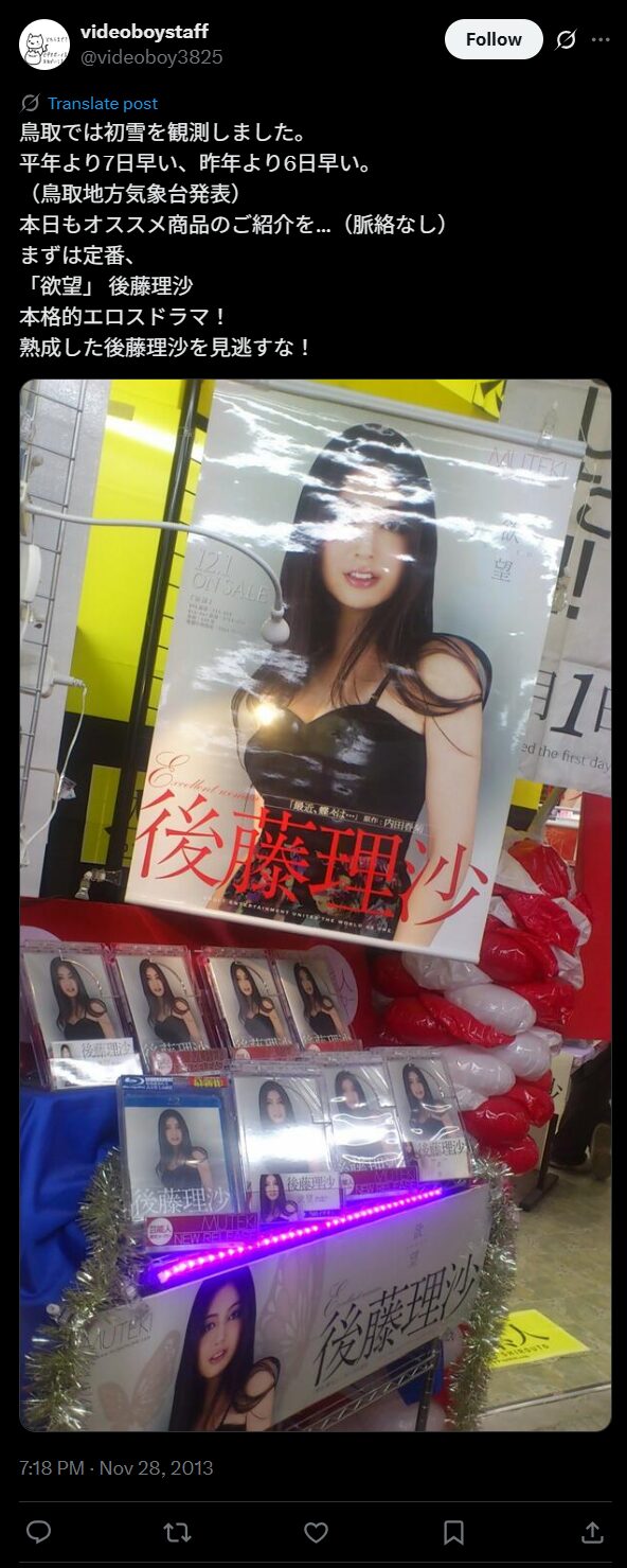 後藤理沙さんは「ポカリスエット」のCMで脚光を浴びた女優。彼女は2014年に「MUTEKI」でセクシーデビューしています。清純派美少女として女優としても活躍していた後藤さんは、19歳で一度芸能界を引退。地元福岡のダーツBARで働らき、ダーツの全国大会に出場と自由に過ごしていました。