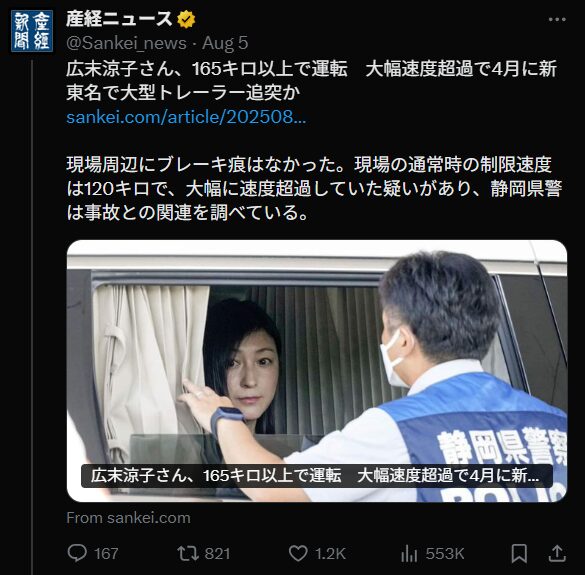 様々な立場の人と枕営業の噂が絶えない広末さんですが、精神的に安定しないことが多く、2025年現在は「双極性感情障害」と診断され通院治療を続けているそうです。事故を起こし看護師への暴行容疑で逮捕されたりとお騒がせな彼女ですが、次の復帰がいつになるかは不明といえます。
