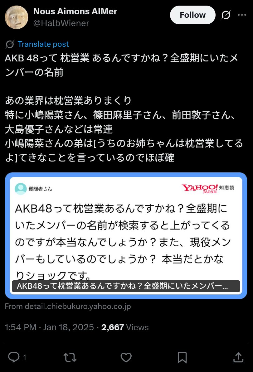 大島優子さんはアイドルグループ「AKB48」の神7と呼ばれたメンバー。彼女は「枕営業でのし上がった」という噂が昔からあり、さらに北野武監督の「愛人部屋」に住んでいたこともわかっています。