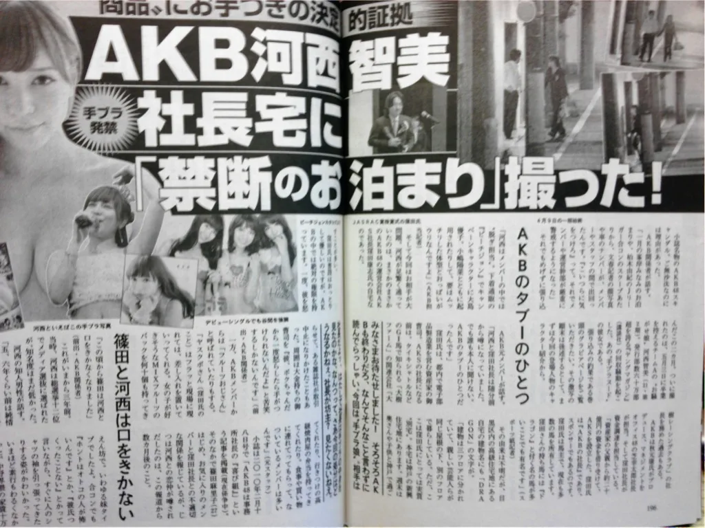 河西智美さんはアイドルグループ「AKB48」の元メンバー。彼女はAKBの運営会社AKSの社長・窪田康志さんとの不倫疑惑をスクープされたことがあります。