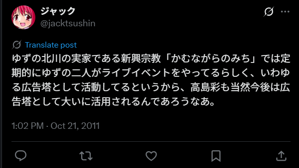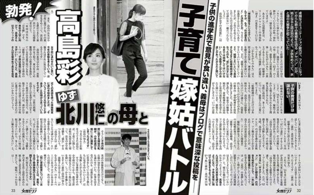 そんな彼女は2011年にゆずの北川悠仁さんと結婚。北川さんの母親は宗教団体「かむながらのみち」の創始者であり、高島さんが宗教の入信を拒否したという噂も。義母との関係が悪くなっているといわれていた時期もあり、子供の教育方針の対立など私生活は大変な様子です。