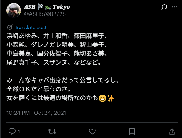 福岡では高級な部類のキャバクラだったそうで、店内の指名ランキングでは上位であり人気キャバ嬢であったとのこと。キャバ嬢時代もタレント活動しており、常連客と店外で会うことを自粛していたそうですが、彼女のファンは多かったのだとか。