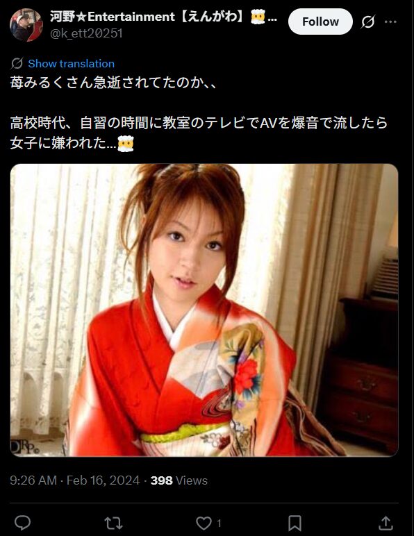 苺みるくさんは、2000年代に活躍した元AV女優。彼女は2000年代を代表するAV女優の1人として活躍していましたが、31歳の若さで2012年に自殺により他界しています。