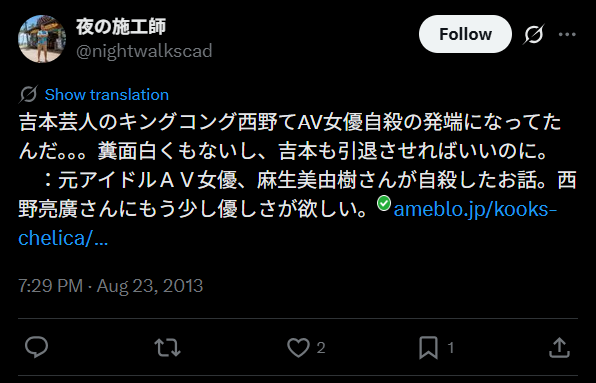 これに対してキングコングの西野亮廣さんが『「50人以上の芸人とヤッた」と言っている女がむかつく』とコメント。名前こそあげなかったものの、「人の不幸でご飯を食べるのが許せない」と話しています。