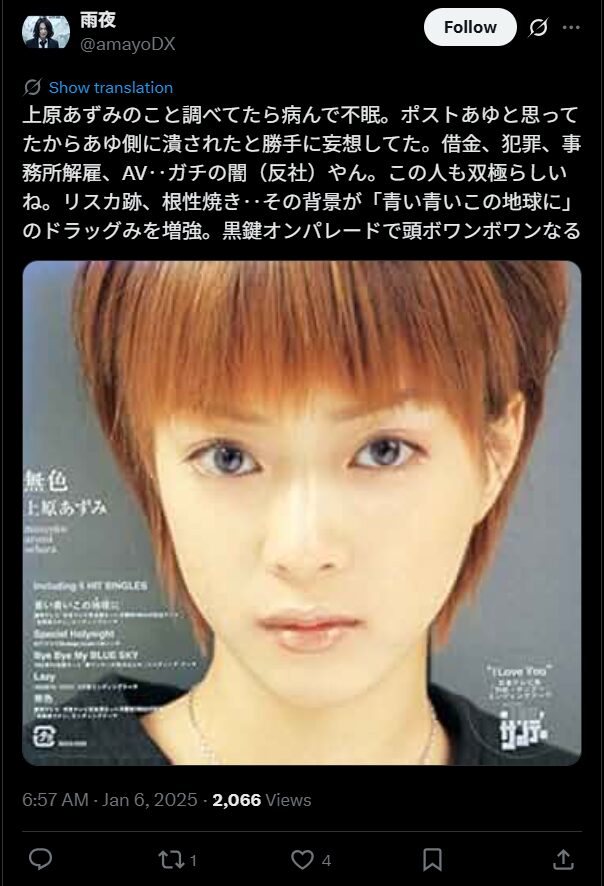立件はされなかったものの解雇された上原さんですが、事務所は彼女が精神不安定であるために扱いに困っていたそうです。解雇後は自殺未遂したという噂も。AVに転身後はかなりハードな内容の作品も出していたようですが、2014年に引退しています。