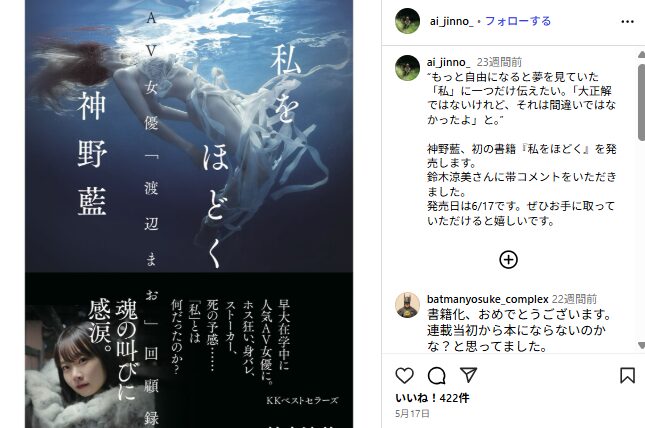 渡辺まおさんは早稲田大学在学中にAVデビューした人物。彼女は引退後、会社員として働きながら「神野藍」さん名義で文筆家デビューしています。彼女は2020年に「現役大学2年生」のキャッチフレーズでデビューしました。