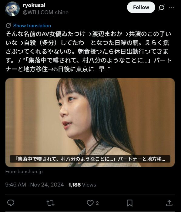 将来的には他の分野の執筆もしたいと語っており、様々なジャンルの人をフォローする活躍を続けているとのこと。2024年にパートナーと地方に移住したそうですが、噂となり集落の中で村八分になったそうで、5日で東京に戻ったことを明かしています。