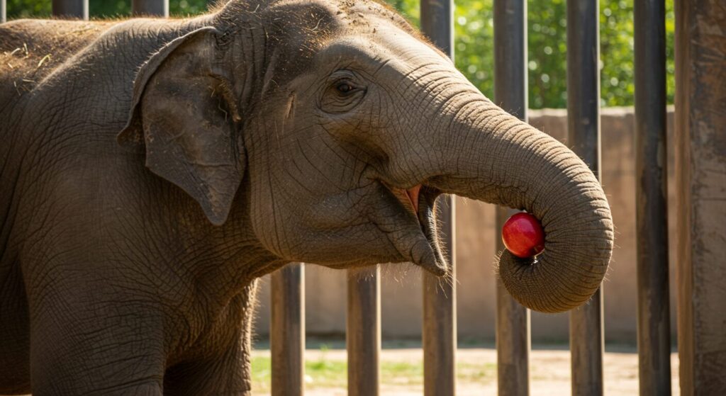ところが、餌を檻に投げ入れると、ダンボは迷わず一番大きなリンゴの欠片に向かっていきました。そして、小さな欠片は最後まで残していたのです。