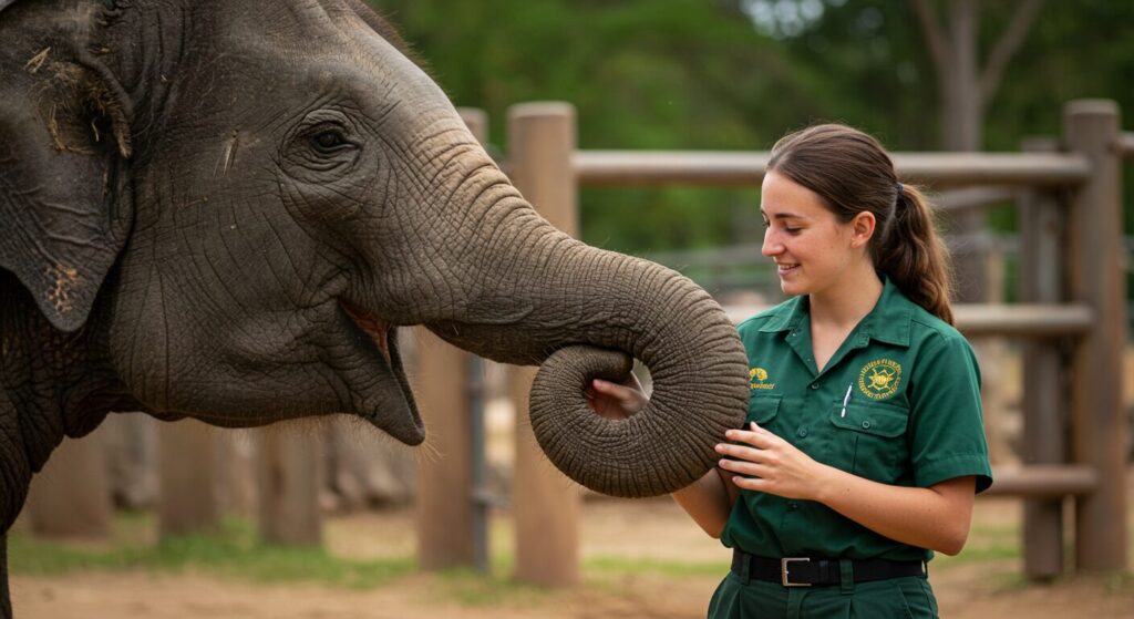 初日の朝、車の中で何度もルームミラーを確認しました。カーキ色の制服は少しサイズが大きく、緊張のせいか顔が青白く見えます。でも、目だけは輝いていました。子どもの頃からナショナル・ジオグラフィックを読み漁り、特に象の賢さと家族愛の深さに魅了されていたからです。