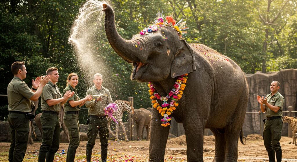 朝のミーティングで自己紹介をすると、先輩職員の皆さんが温かく迎えてくれました。特に、象担当のマイク主任(48歳、この道25年のベテラン)は、まるで父親のような温かい笑顔で私を見てくれました。