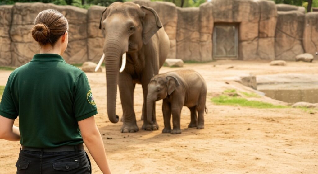 来園者が象舎に近づくと、まずダンボが前に出て、ベラを守るような態勢を取ります。そして、「この子に近づくな」と言わんばかりに、威嚇するような仕草を見せるのです。