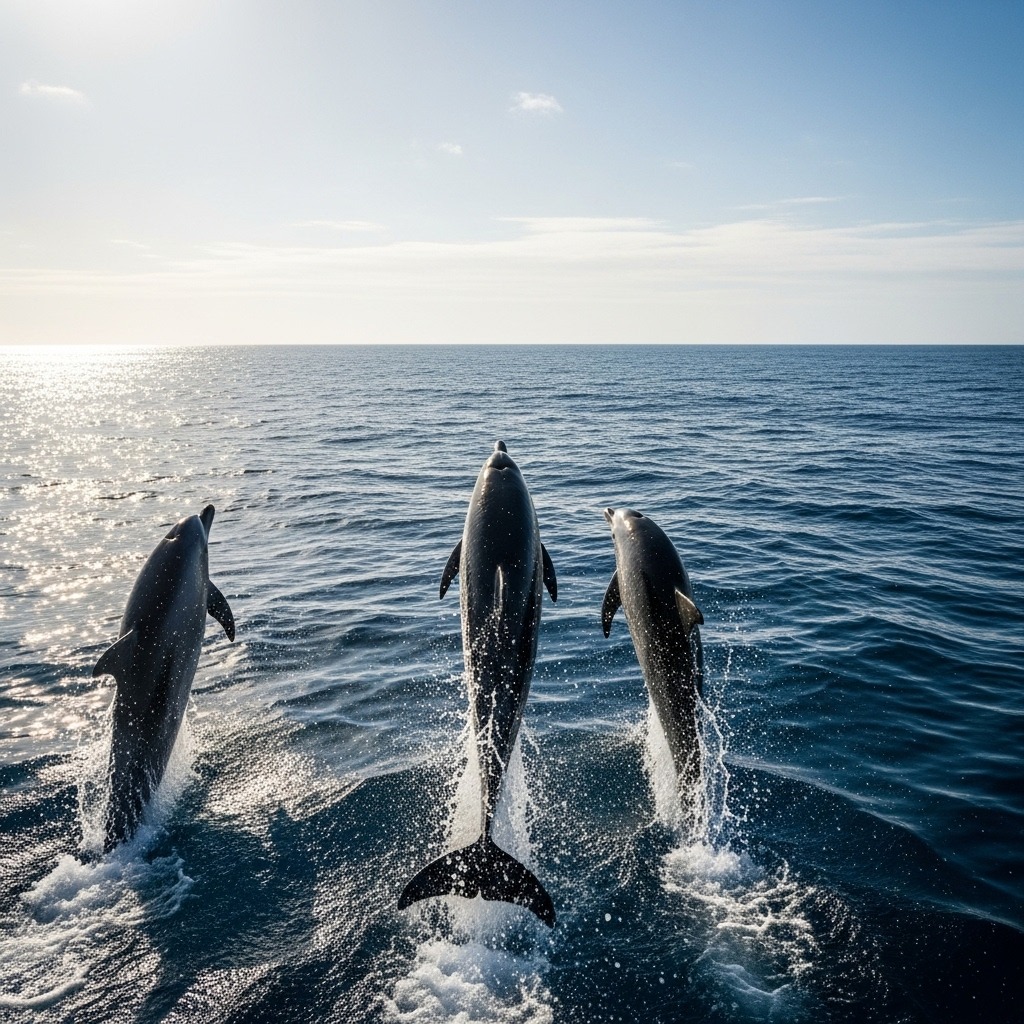 水面に戻ると、イルカの群れは壮大なジャンプを披露した。何度も何度も、水面から飛び上がり、まるで踊っているようだった。「これは…感謝の表現だ」サラは感動で声を震わせた。船に戻った二人を、船員たちが拍手で迎えた。しかしサラは複雑な表情だった。「こんなことが日常的に起きているのかもしれない。私たちが気づかないだけで」マイケルが頷いた。「海には、まだ私たちの知らない物語がたくさんある」イルカたちはしばらく船と並走した後、ゆっくりと沖へと消えていった。別れの挨拶のように。
