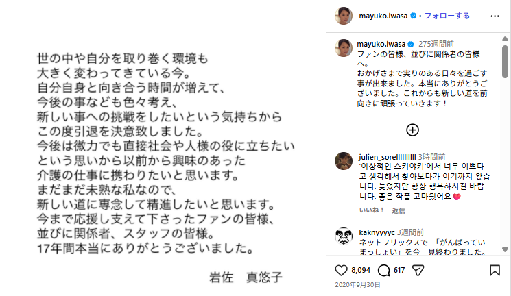 2014年には一般人男性と交際しており、彼女のフルヌードのラブシーンを演じる際には、彼氏に嫉妬されたというエピソードも。しかし束縛が強かったために2年ほどで破局してしまいました。彼女は2020年に芸能界を引退し、介護の道に進むことを発表。