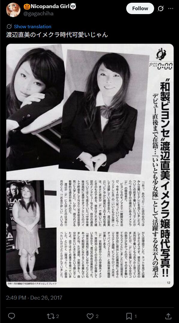 渡辺さんは風俗で働いていた経験があり、吉本興業の養成所の学費を貯めていたのだそう。イメクラで働いていたそうで、当時の写真も出回っており「可愛い」「痩せている」と驚きの声が上がりました。風俗勤務がバレても、芸能界での人気に影響はなかったようです。
