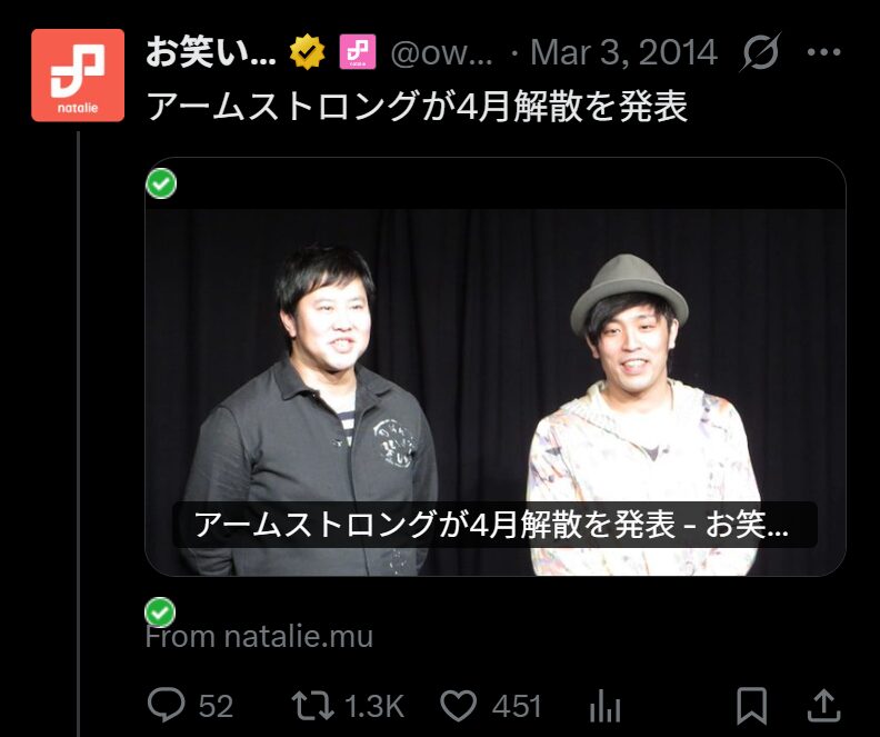 栗山直人さんは、現在パチスロライターとして活躍している元お笑い芸人。安村昇剛さんは、「とにかく明るい安村」の名前で世界で活躍しているお笑い芸人。2人はお笑いコンビ「アームストロング」としてコンビを組んでいましたが、幼稚園時代からの幼馴染だったといいます。