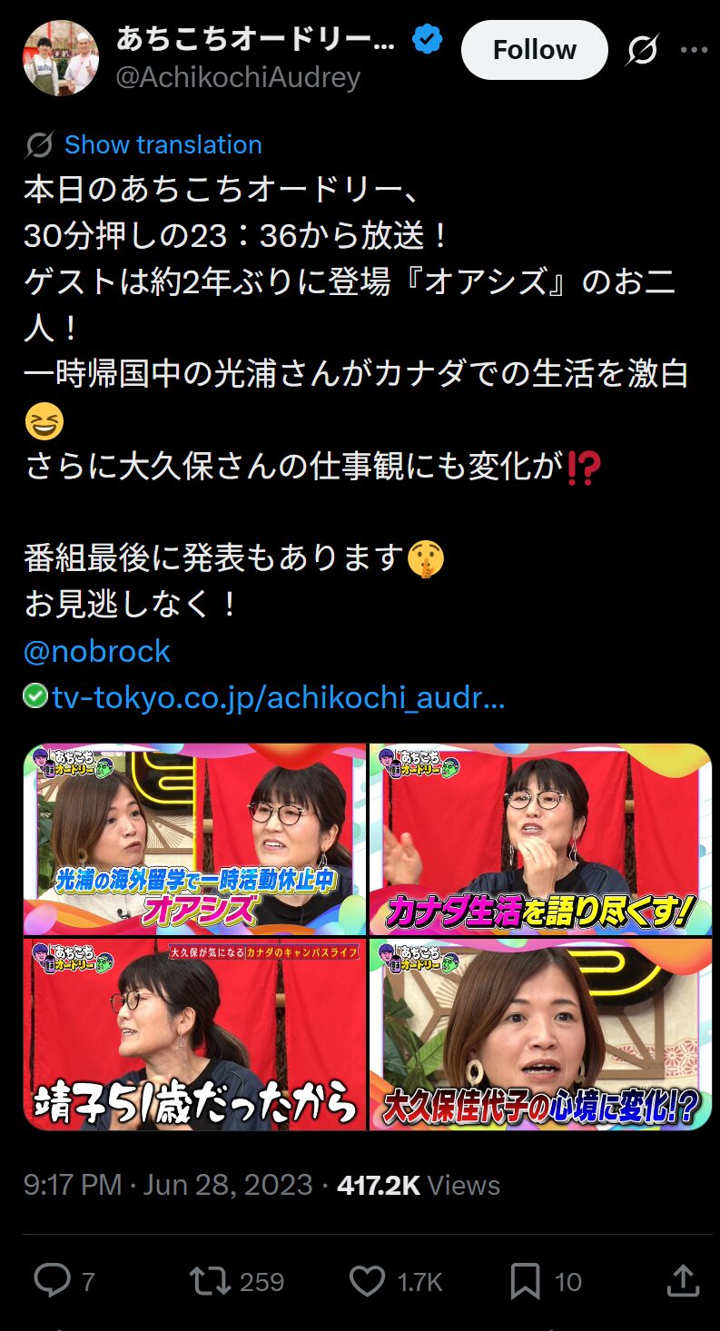 2021年に光浦さんは、カナダのバンクーバーに語学留学へ。2023年に一時帰国した際には、オアシズの仕事で2年ぶりに会ったことを暴露しています。連絡も取っておらず、いつ帰ってくるかも知らなかったのだそう。連絡を取っていないということで、2人の関係性に驚いた視聴者も多かったようです。